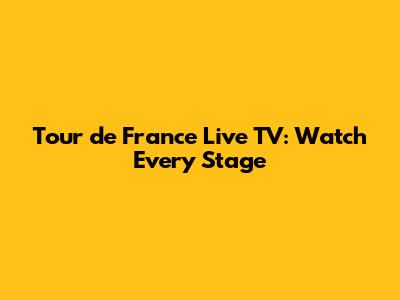 Tour De France Live TV: Watch Every Stage